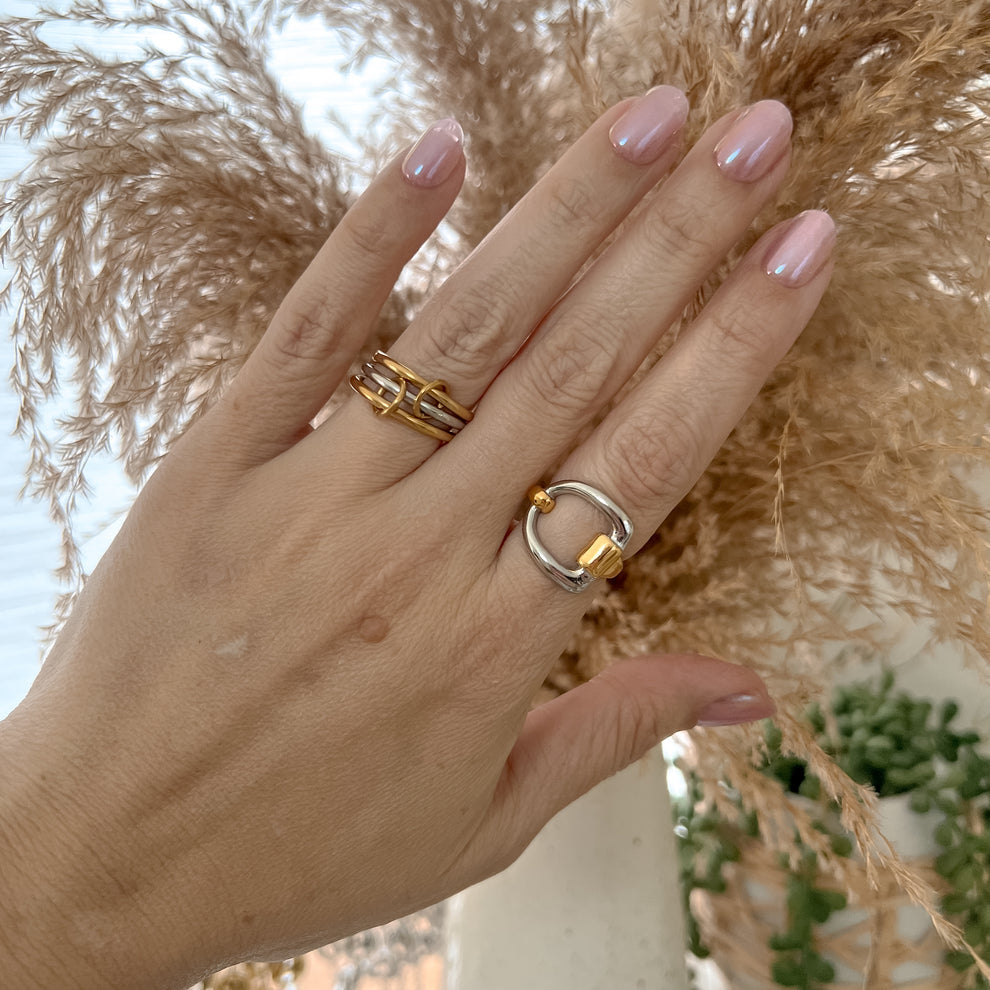 Šis elegantiško stiliaus žiedas iš nerūdijančio plieno – tai stilingas ir išraiškingas aksesuaras kasdienai. Žiedas išsiskiria daugiakomponenčiu dizainu ir įvairiaspalviais akcentais, kurie suteikia žaismingumo ir modernumo. Patvari medžiaga užtikrina ilgaamžiškumą ir komfortą, o unikalūs elementai paverčia jį puikiu pasirinkimu norinčioms išsiskirti subtiliai ir stilingai.